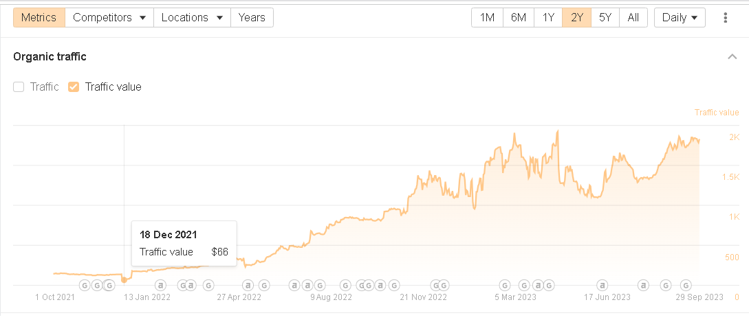 - Impressively, the traffic value jumped to $1,849, marking a nearly 9-fold increase.
