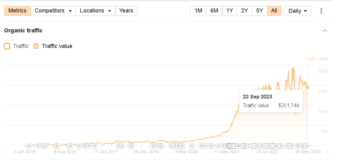 - Traffic Value: A whopping increase to $201,744 (Equivalent to PPC Spend)