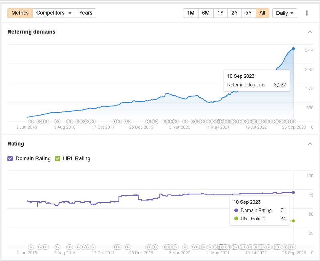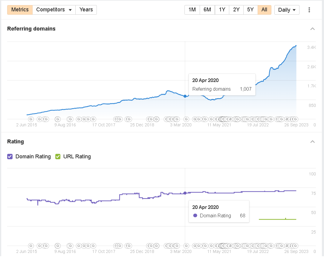 With an initial domain rating of 68, pushing this number further up required securing backlinks from ultra-high-authority domains, which is often a tough feat.